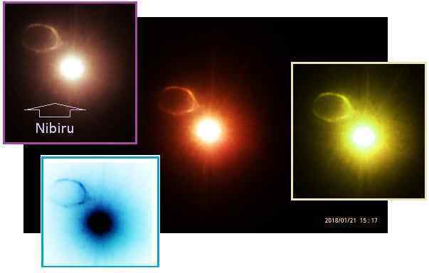月達のこの奇妙な輪は、チェックマーク、横に回転した、別名“ブーメランの月の渦巻き旋回です。 今、人は、目に見える全ての月達とともに、一望のもとにチェックマークの両腕を見ています。 月達の配置は、どちらかの側に2個の次に優勢な月達のある一つの優勢な月、ニビルそのものが肩パッドの外見のある配置である二重螺旋のために形成されました。 チェックマークの内のそれぞれの次に優勢な月は、そのとき、★背後に引きずっているそれに引きつけられた、いっそう小さな月達を見出します。 輪が近くに見えるのは、他の腕に引きつけられているチェックマークのそれぞれの腕のためです。 これは、“★重力のダンス”です。