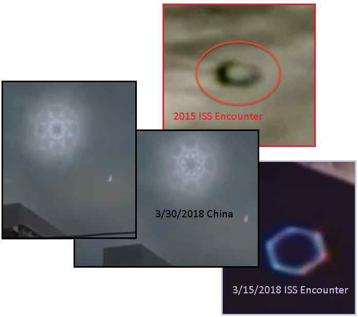 中国の都市上空で見られた八角系のUFOの意味は、何でしょうか? 2018年3月15日に、六角形のUFOがISSの隣に撮影されました。 六角形UFOはまた、2015年2月に、ISSの隣に現れていました。 独特な幾何学的形体は、特にそれらが画像に記録された場所を表示した点で、それらが珍しく否定しようがないので、広範囲の視聴者へのメッセージを伝えるために使用されます。 ISSは、短期間ならいっそう多くの宇宙飛行士達を収容することができるけれども、6人のための寝室区画があります。 ISSを訪問していた六角形UFOは、“ニビルの尾の破片からの危険状態にある”ことを、テレパシーでステーション内の者達に警告しています。