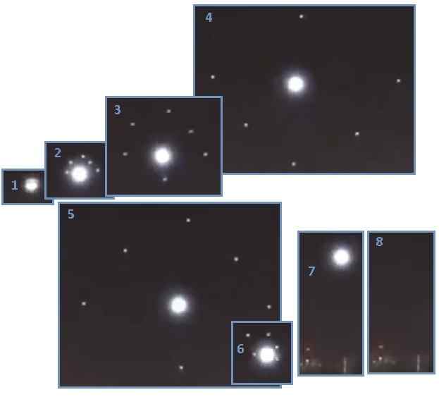 このUFOの恣意飛行の動画の中に、大きな明るい球体は、突然出現します。 それから6個のいっそう小さな球体が出現して、完全な円を描いて、反時計回りの動きで、中央の球体を円で囲みます。 それから6個のいっそう小さな球体は、中央の球体が消える前に、中央に戻ります。 下方の都市のすべての人々によって見られたこの恣意飛行は、“★最後の数週間”の話を伝えています。 ニビルは、“真珠の首飾り”のような、その優勢な“月の渦巻き旋回”とともに、上空で★非常に大きくなるでしょう。 地球は、“★3日間の暗闇”と“6日間の西からの日の出”の間、文字どおり★逆さまに回転し、それから戻ります。