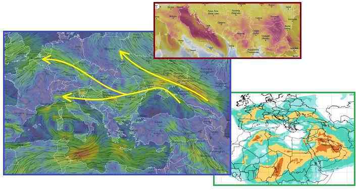 ★PM10煙霧質の非常に高い値は、中央ヨーロッパの大部分を移流によって輸送して、今週末には西ヨーロッパに達すると予想されます。 このパターンは、今、カスピ海(そしてその東のカラコルム砂漠)から、バルカン半島と中央ヨーロッパを渡って、はるか西にPM10粒子の非常に高い値を運んでいます。